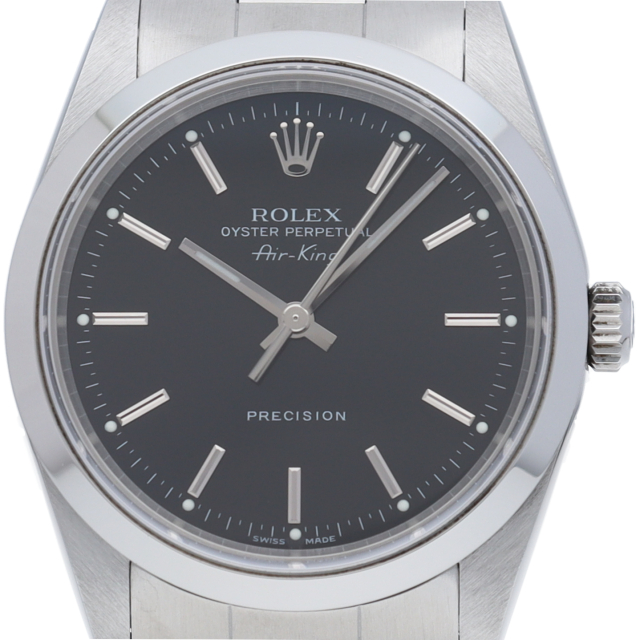 ロレックスの中でもシンプルでオーソドックなデザインが人気の「エアキング」。時計本来の性能を追求し、スタイルを選ばず使用できます。
