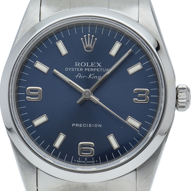 ロレックスの中でもシンプルでオーソドックなデザインが人気の「エアキング」。時計本来の性能を追求し、スタイルを選ばず使用できます。