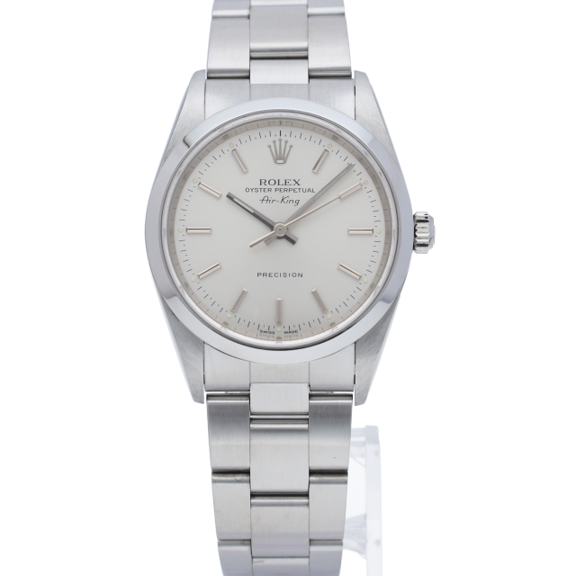 ロレックスの中でもシンプルでオーソドックなデザインが人気の「エアキング」。時計本来の性能を追求し、スタイルを選ばず使用できます。