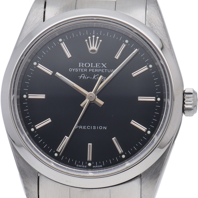 ロレックスの中でもシンプルでオーソドックなデザインが人気の「エアキング」。時計本来の性能を追求し、スタイルを選ばず使用できます。