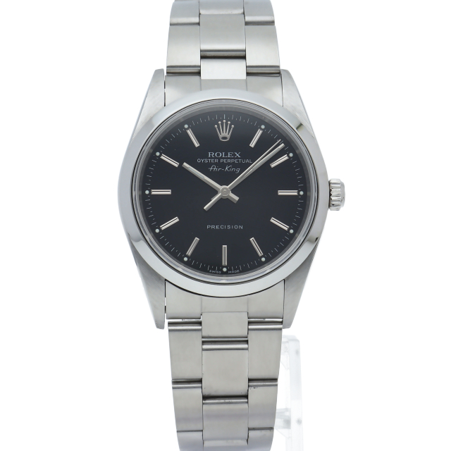 ロレックスの中でもシンプルでオーソドックなデザインが人気の「エアキング」。時計本来の性能を追求し、スタイルを選ばず使用できます。