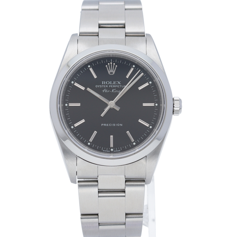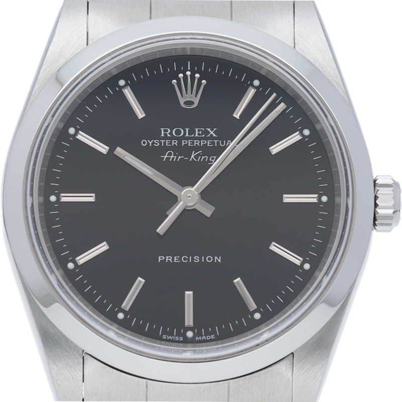 ロレックスの中でもシンプルでオーソドックなデザインが人気の「エアキング」。時計本来の性能を追求し、スタイルを選ばず使用できます。
