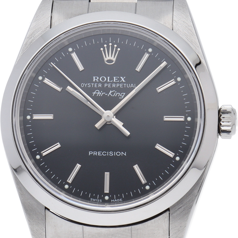ロレックスの中でもシンプルでオーソドックなデザインが人気の「エアキング」。時計本来の性能を追求し、スタイルを選ばず使用できます。