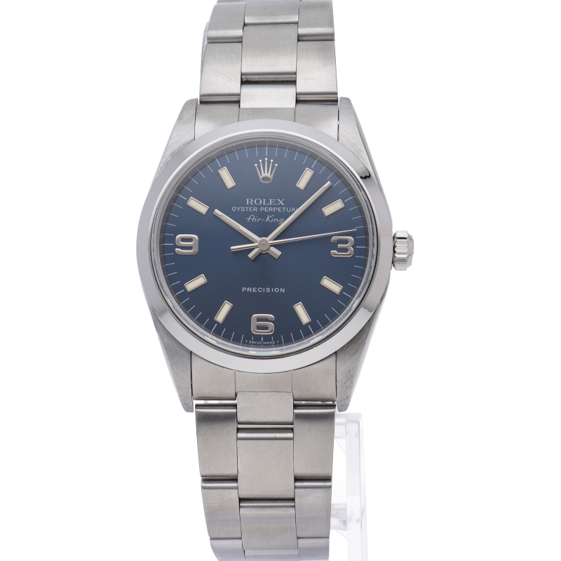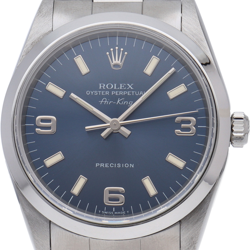 ロレックスの中でもシンプルでオーソドックなデザインが人気の「エアキング」。時計本来の性能を追求し、スタイルを選ばず使用できます。