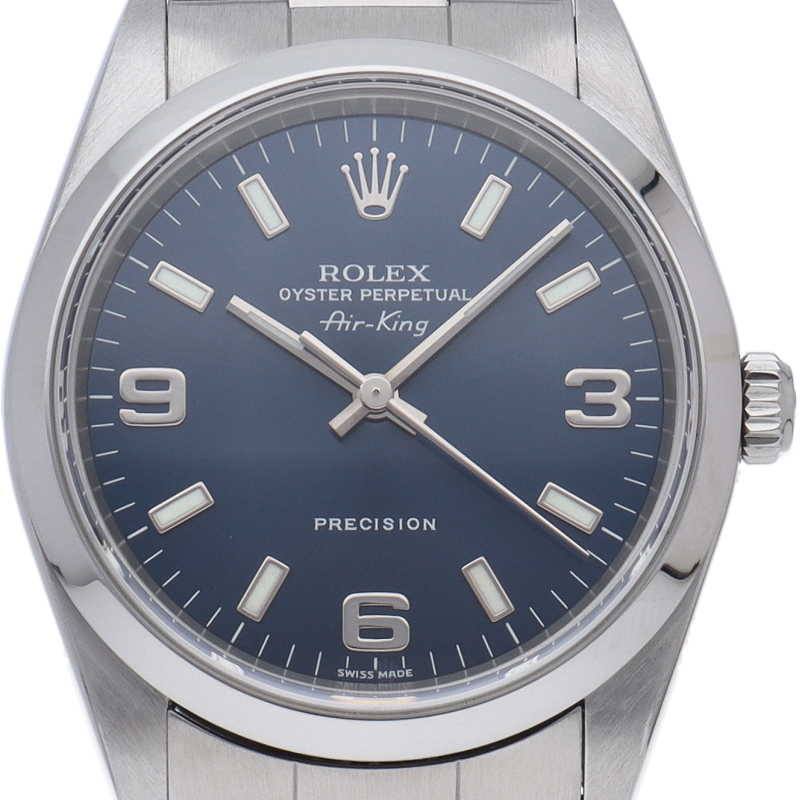 ロレックスの中でもシンプルでオーソドックなデザインが人気の「エアキング」。時計本来の性能を追求し、スタイルを選ばず使用できます。
