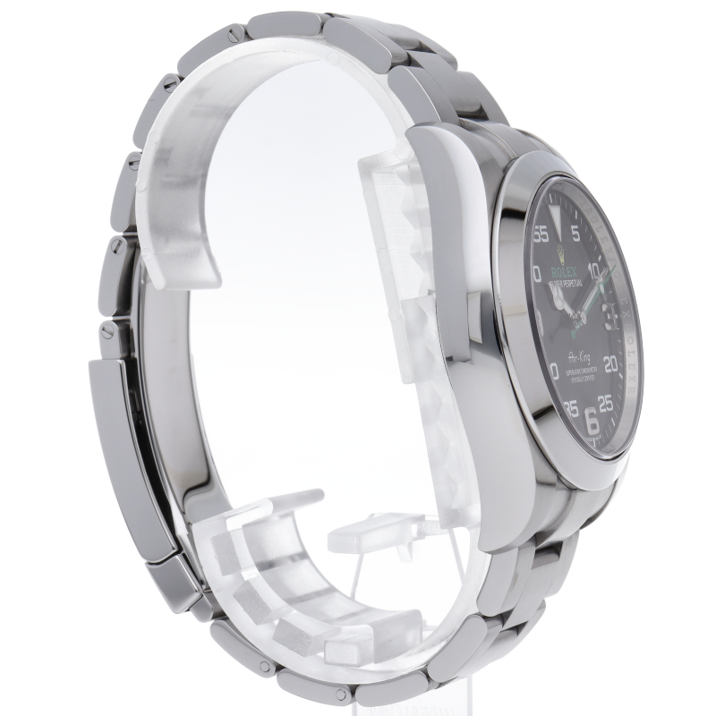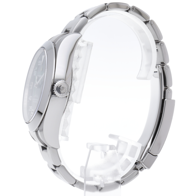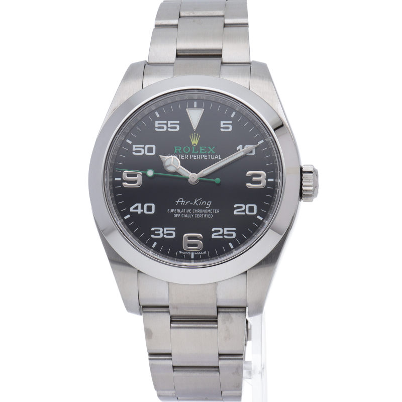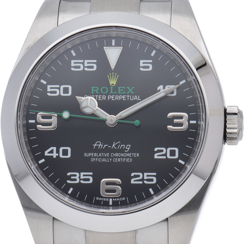 2016年発表のニューモデル、Ref.116900「オイスターパーペチュアル エアキング」。飛躍的に航空技術が進歩した1930年代に高精度を求めるパイロットに愛されていたオイスターモデルをオマージュして製造されたパイロットウォッチです。