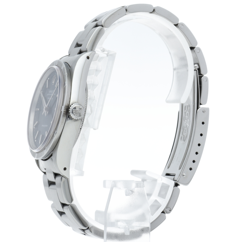ロレックスの中でもシンプルでオーソドックなデザインが人気の「エアキング」。時計本来の性能を追求し、スタイルを選ばず使用できます。エンジンターンドベゼル仕様。