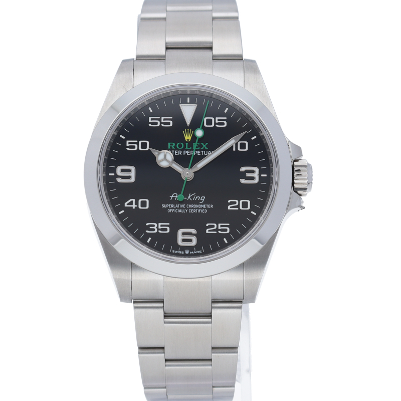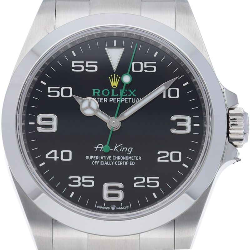 2022年発表のニューモデル、Ref.126900「オイスターパーペチュアル エアキング」。飛躍的に航空技術が進歩した1930年代に高精度を求めるパイロットに愛されていたオイスターモデルをオマージュして製造されたパイロットウォッチです。