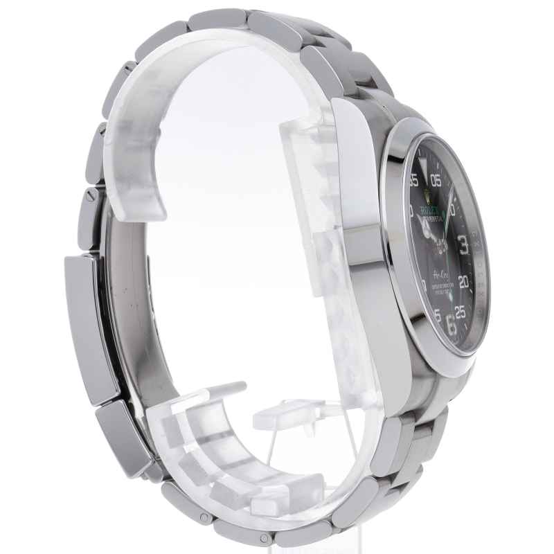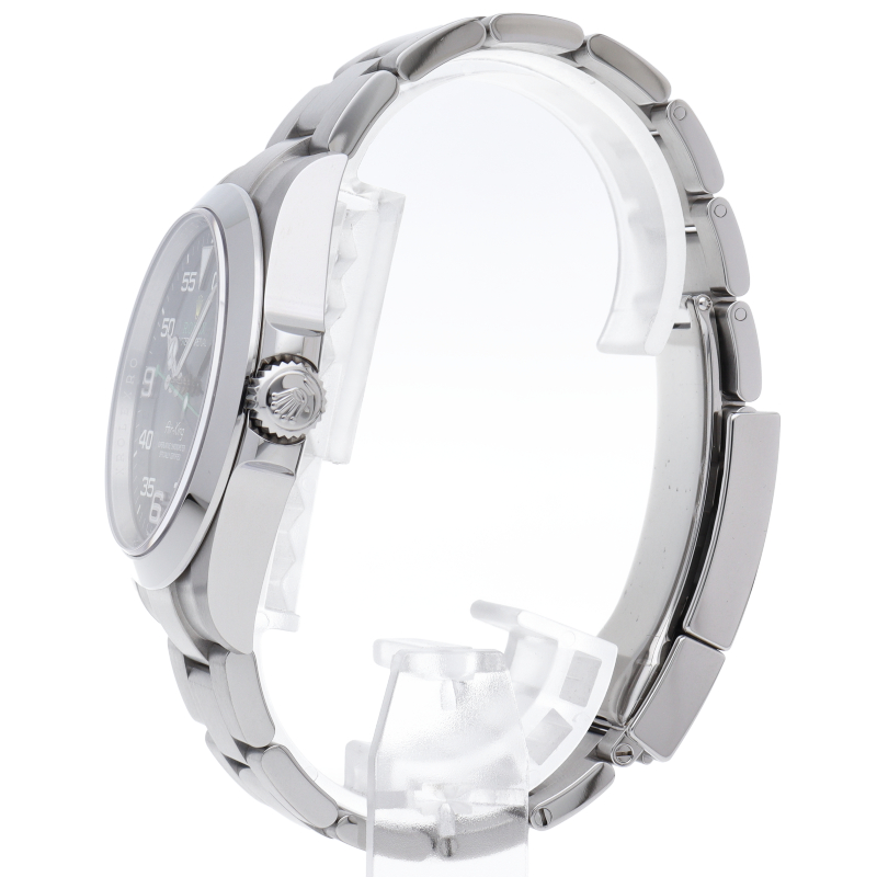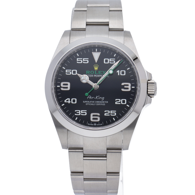 2022年発表のニューモデル、Ref.126900「オイスターパーペチュアル エアキング」。飛躍的に航空技術が進歩した1930年代に高精度を求めるパイロットに愛されていたオイスターモデルをオマージュして製造されたパイロットウォッチです。