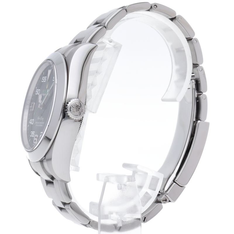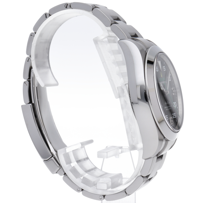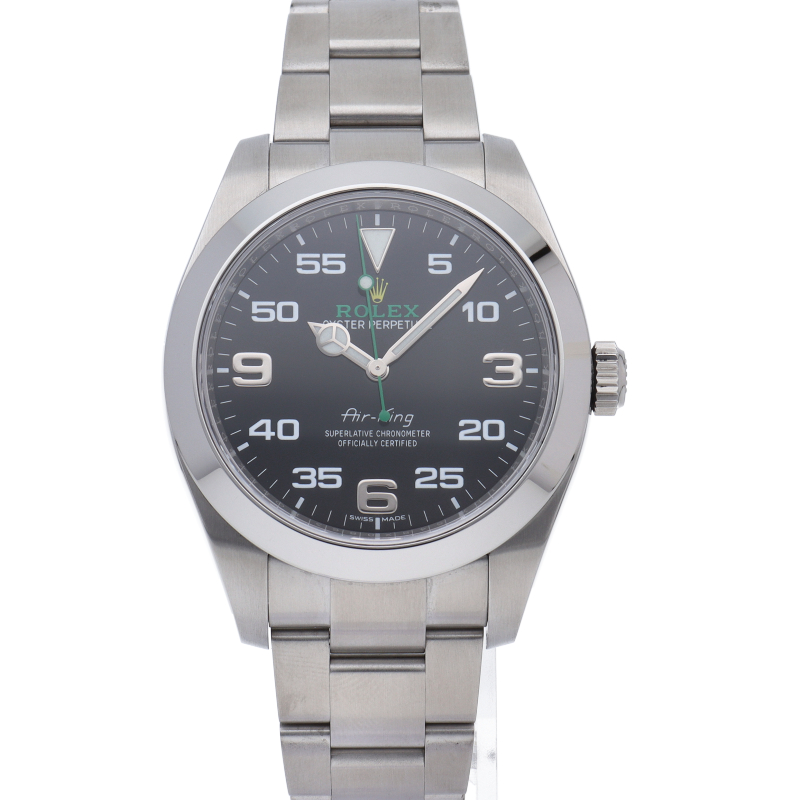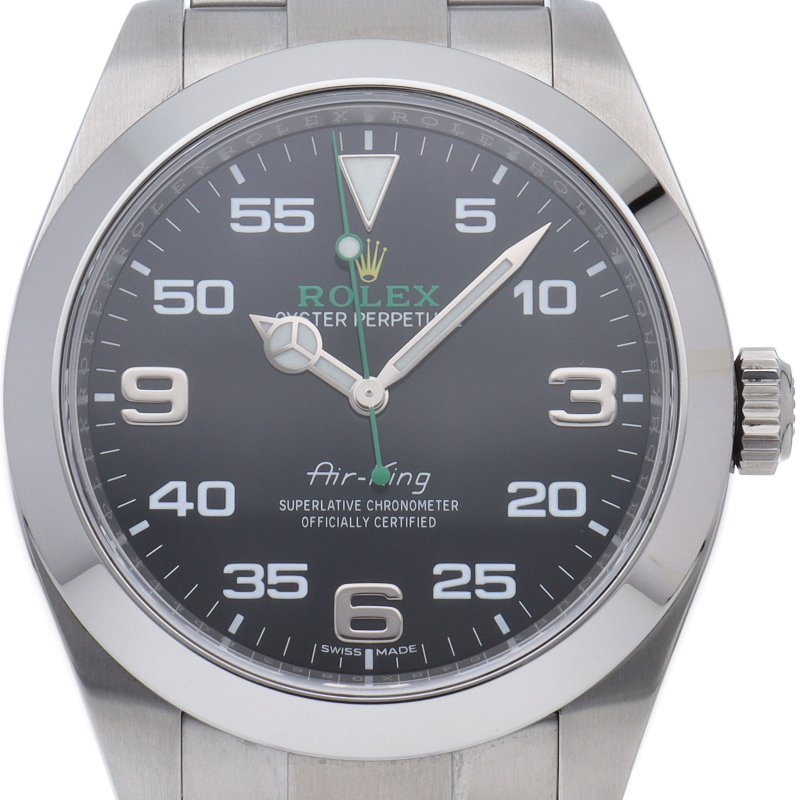 2016年発表のニューモデル、Ref.116900「オイスターパーペチュアル エアキング」。飛躍的に航空技術が進歩した1930年代に高精度を求めるパイロットに愛されていたオイスターモデルをオマージュして製造されたパイロットウォッチです。