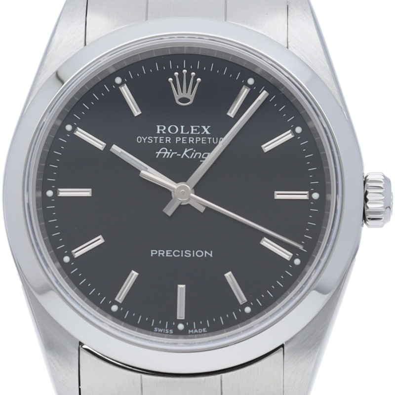ロレックスの中でもシンプルでオーソドックなデザインが人気の「エアキング」。時計本来の性能を追求し、スタイルを選ばず使用できます。
