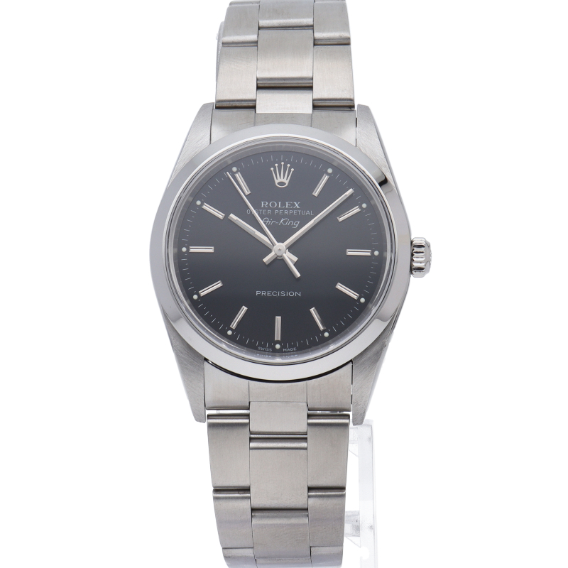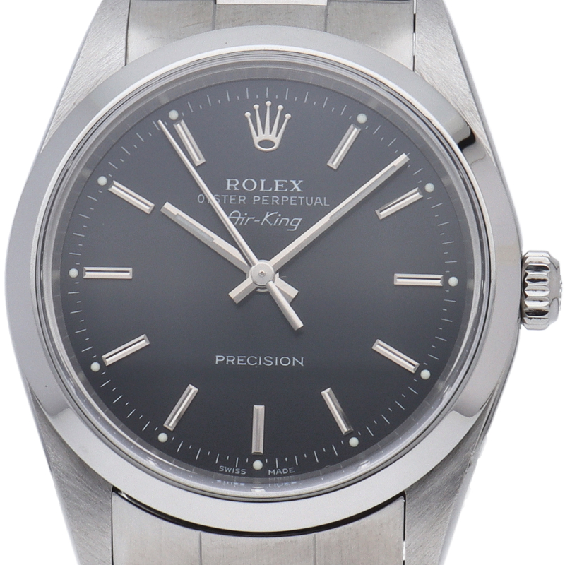 ロレックスの中でもシンプルでオーソドックなデザインが人気の「エアキング」。時計本来の性能を追求し、スタイルを選ばず使用できます。