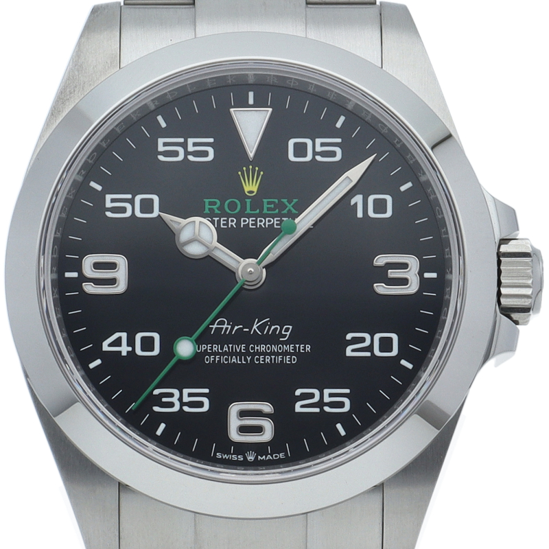 2022年発表のニューモデル、Ref.126900「オイスターパーペチュアル エアキング」。飛躍的に航空技術が進歩した1930年代に高精度を求めるパイロットに愛されていたオイスターモデルをオマージュして製造されたパイロットウォッチです。