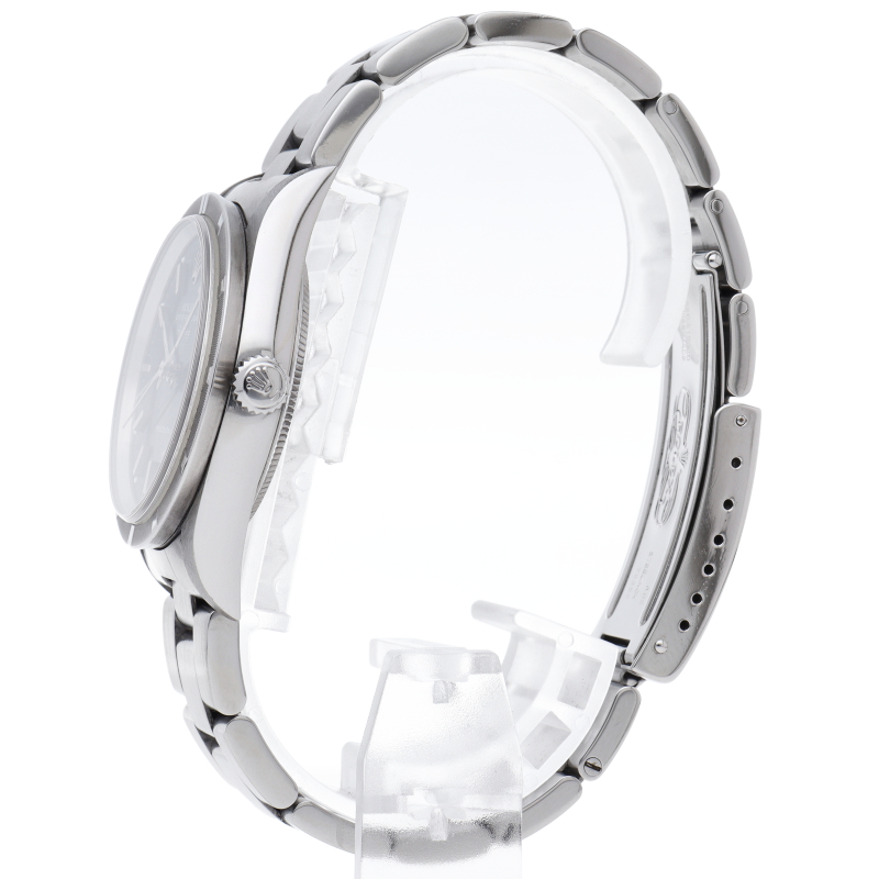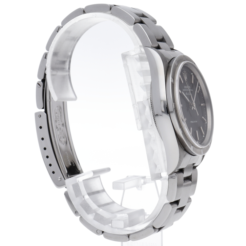 ロレックスの中でもシンプルでオーソドックなデザインが人気の「エアキング」。時計本来の性能を追求し、スタイルを選ばず使用できます。エンジンターンドベゼル仕様。