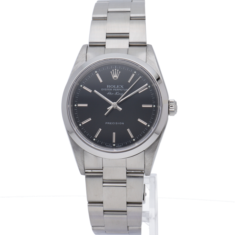 ロレックスの中でもシンプルでオーソドックなデザインが人気の「エアキング」。時計本来の性能を追求し、スタイルを選ばず使用できます。
