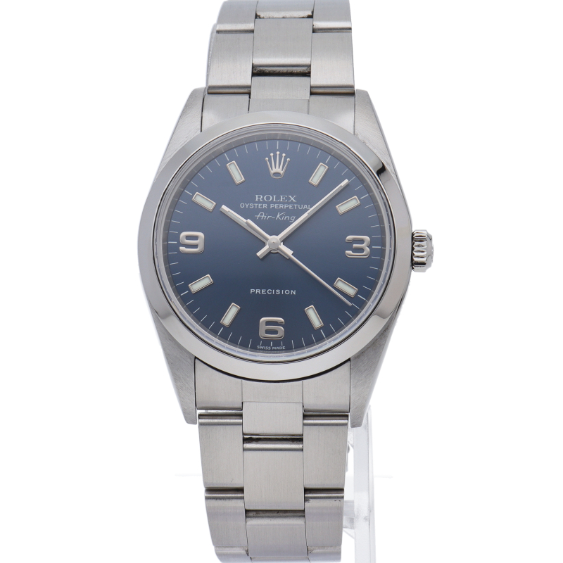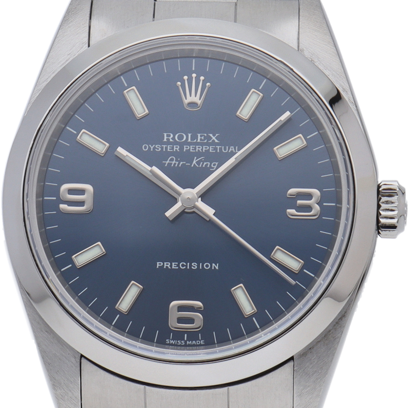 ロレックスの中でもシンプルでオーソドックなデザインが人気の「エアキング」。時計本来の性能を追求し、スタイルを選ばず使用できます。