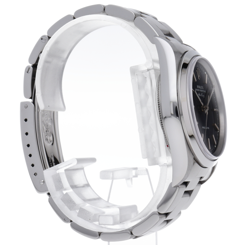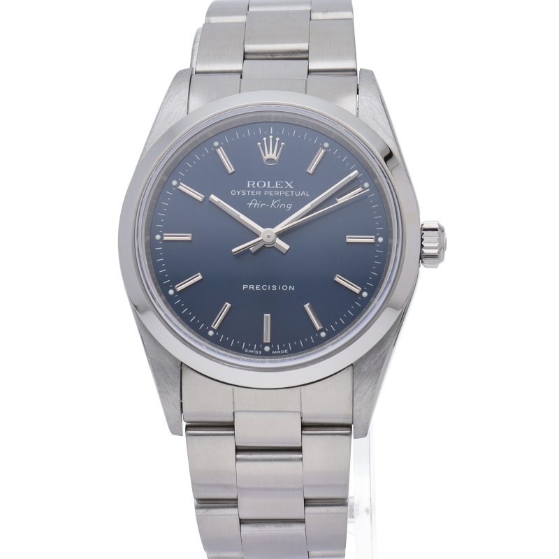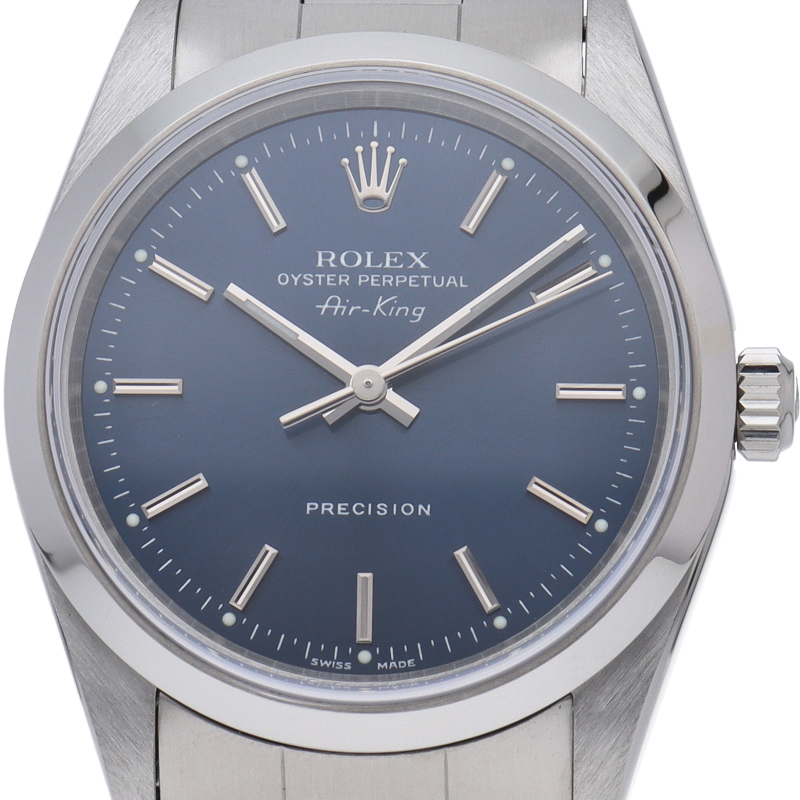 ロレックスの中でもシンプルでオーソドックなデザインが人気の「エアキング」。時計本来の性能を追求し、スタイルを選ばず使用できます。