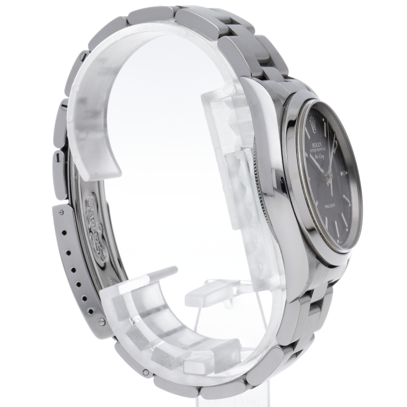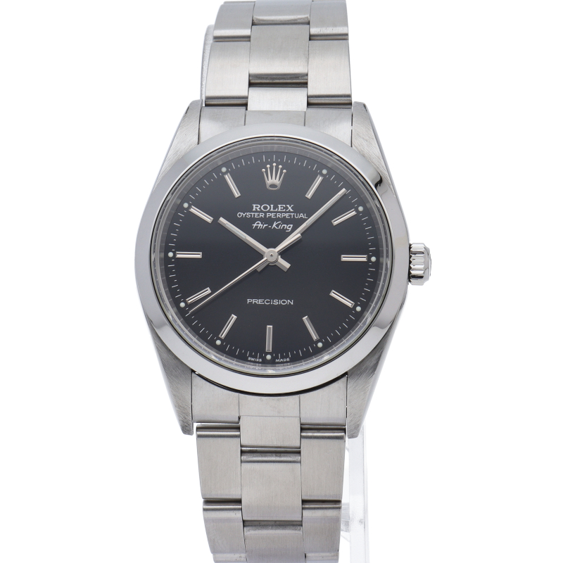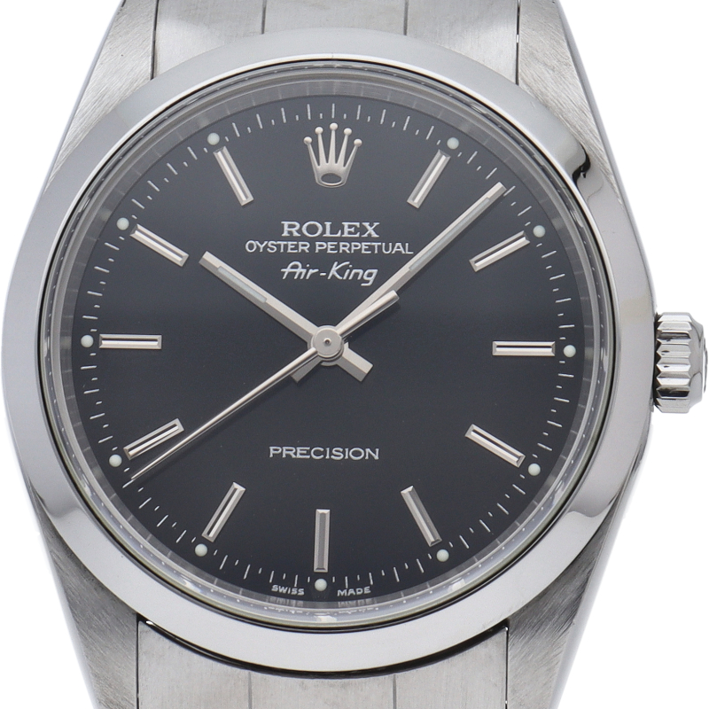 ロレックスの中でもシンプルでオーソドックなデザインが人気の「エアキング」。時計本来の性能を追求し、スタイルを選ばず使用できます。