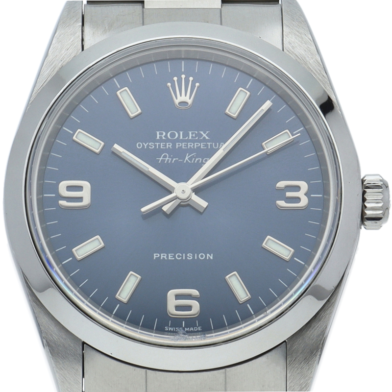 ロレックスの中でもシンプルでオーソドックなデザインが人気の「エアキング」。時計本来の性能を追求し、スタイルを選ばず使用できます。