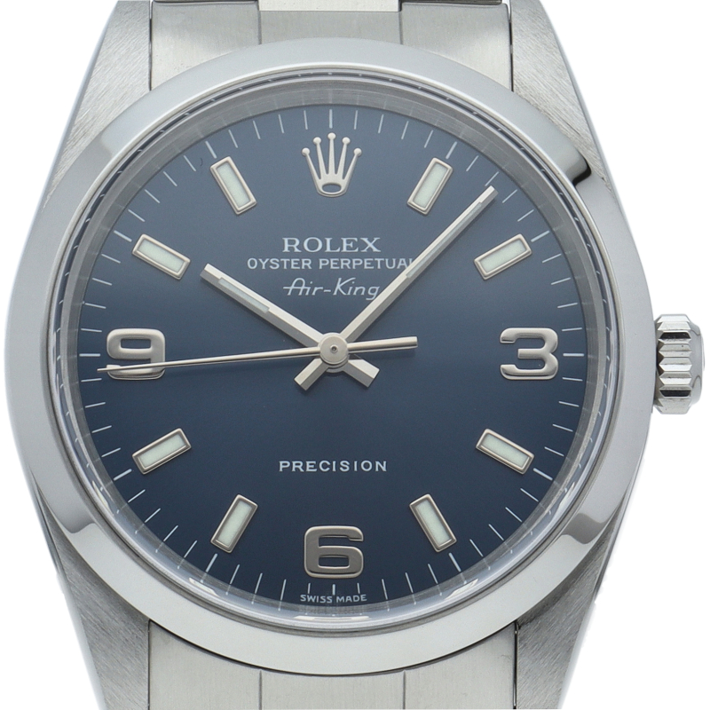 ロレックスの中でもシンプルでオーソドックなデザインが人気の「エアキング」。時計本来の性能を追求し、スタイルを選ばず使用できます。