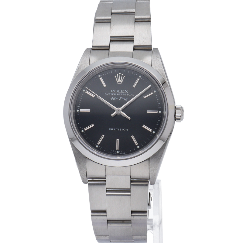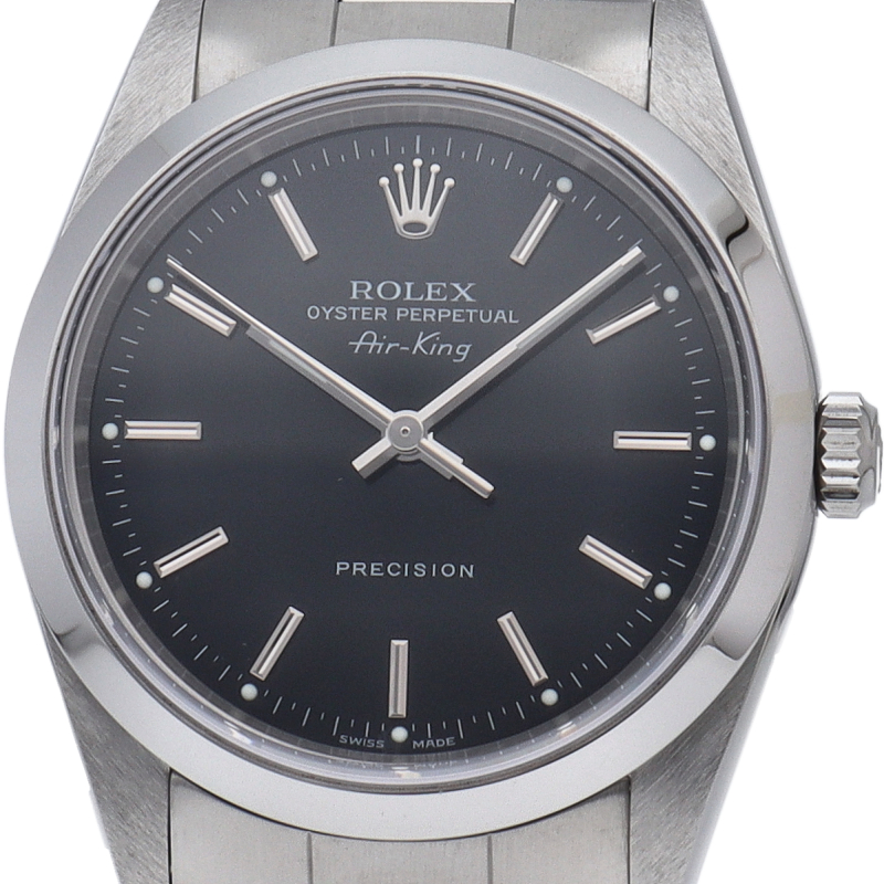 ロレックスの中でもシンプルでオーソドックなデザインが人気の「エアキング」。時計本来の性能を追求し、スタイルを選ばず使用できます。