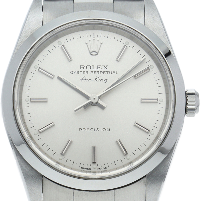 ロレックスの中でもシンプルでオーソドックなデザインが人気の「エアキング」。時計本来の性能を追求し、スタイルを選ばず使用できます。