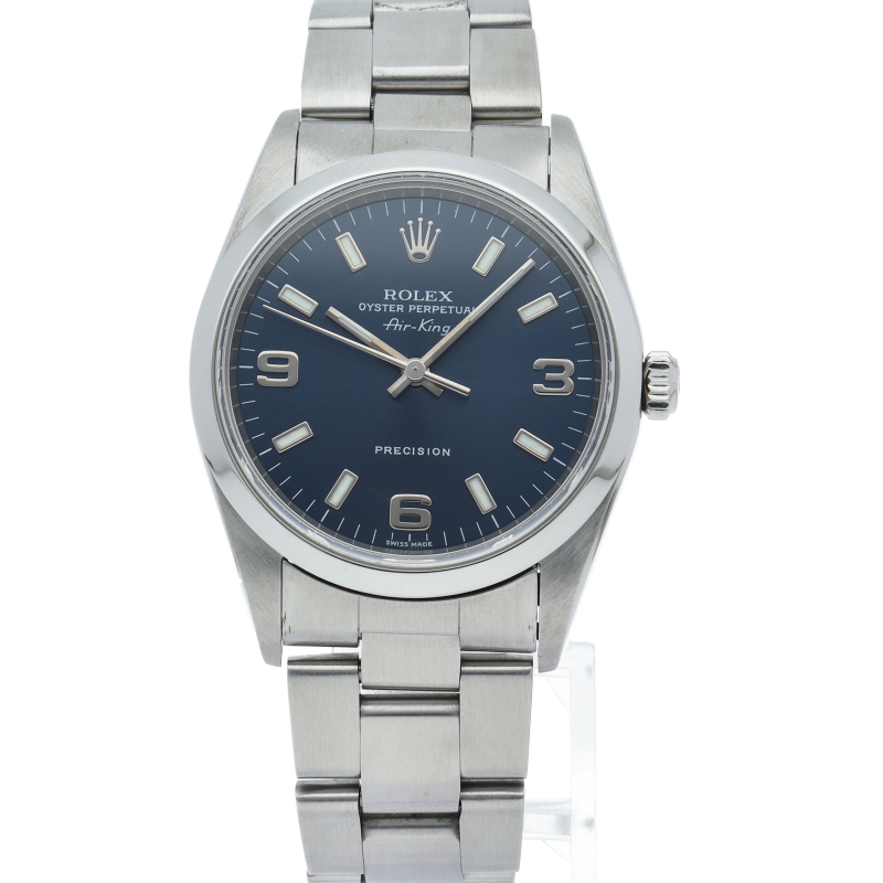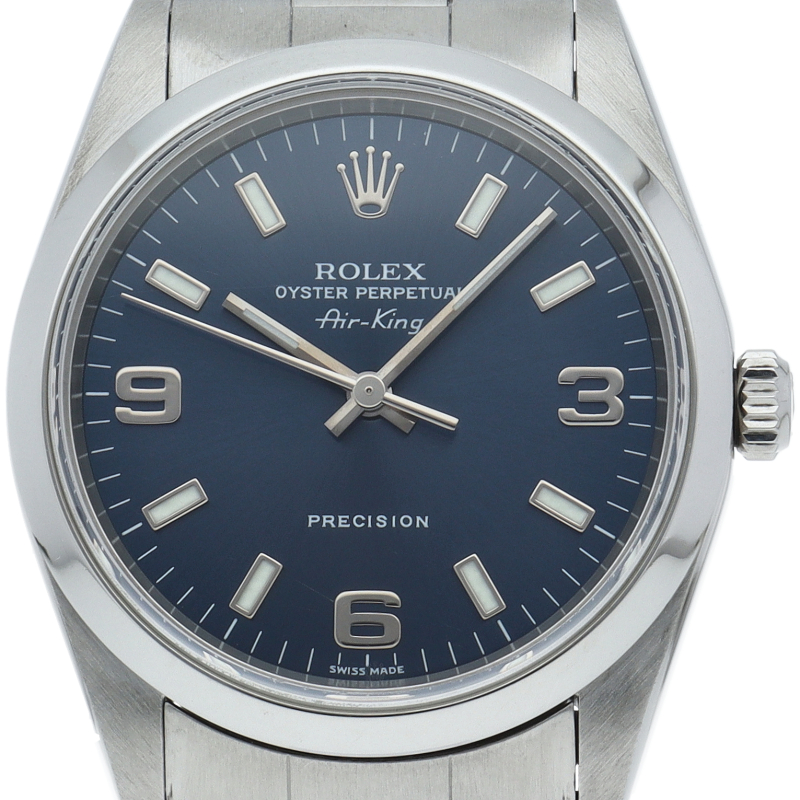 ロレックスの中でもシンプルでオーソドックなデザインが人気の「エアキング」。時計本来の性能を追求し、スタイルを選ばず使用できます。