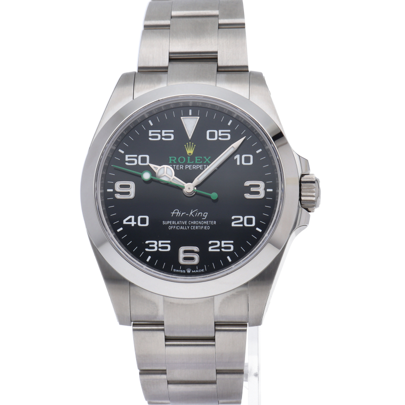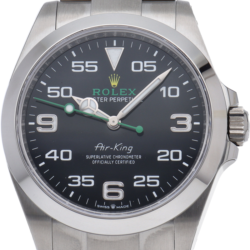 2022年発表のニューモデル、Ref.126900「オイスターパーペチュアル エアキング」。飛躍的に航空技術が進歩した1930年代に高精度を求めるパイロットに愛されていたオイスターモデルをオマージュして製造されたパイロットウォッチです。