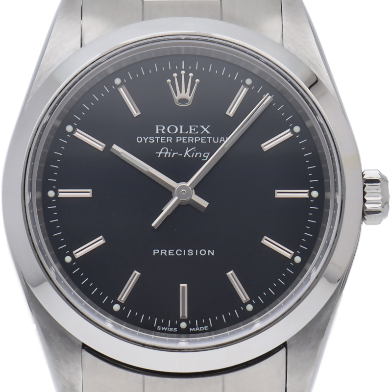 ロレックスの中でもシンプルでオーソドックなデザインが人気の「エアキング」。時計本来の性能を追求し、スタイルを選ばず使用できます。
