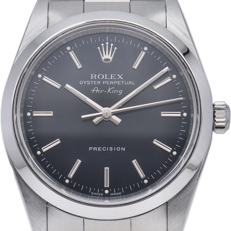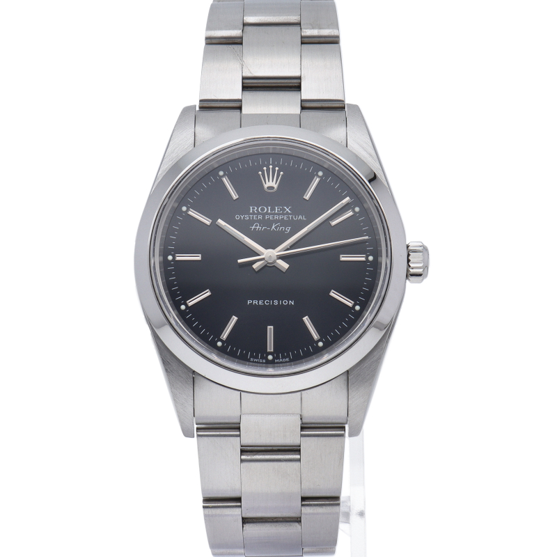 ロレックスの中でもシンプルでオーソドックなデザインが人気の「エアキング」。時計本来の性能を追求し、スタイルを選ばず使用できます。