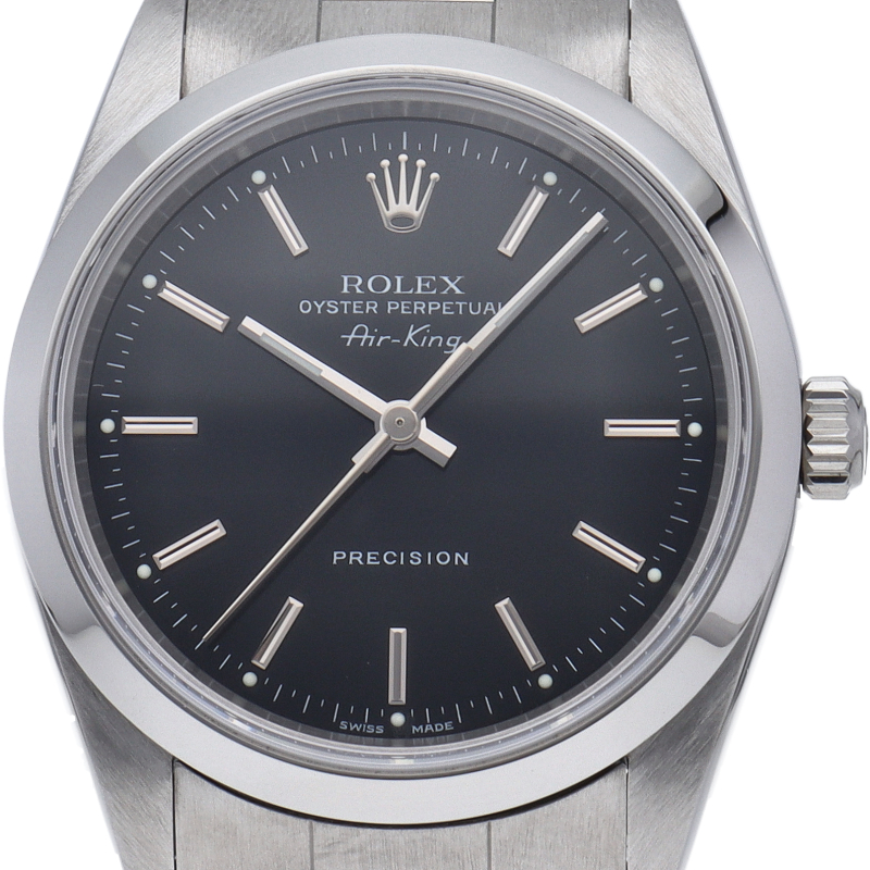 ロレックスの中でもシンプルでオーソドックなデザインが人気の「エアキング」。時計本来の性能を追求し、スタイルを選ばず使用できます。