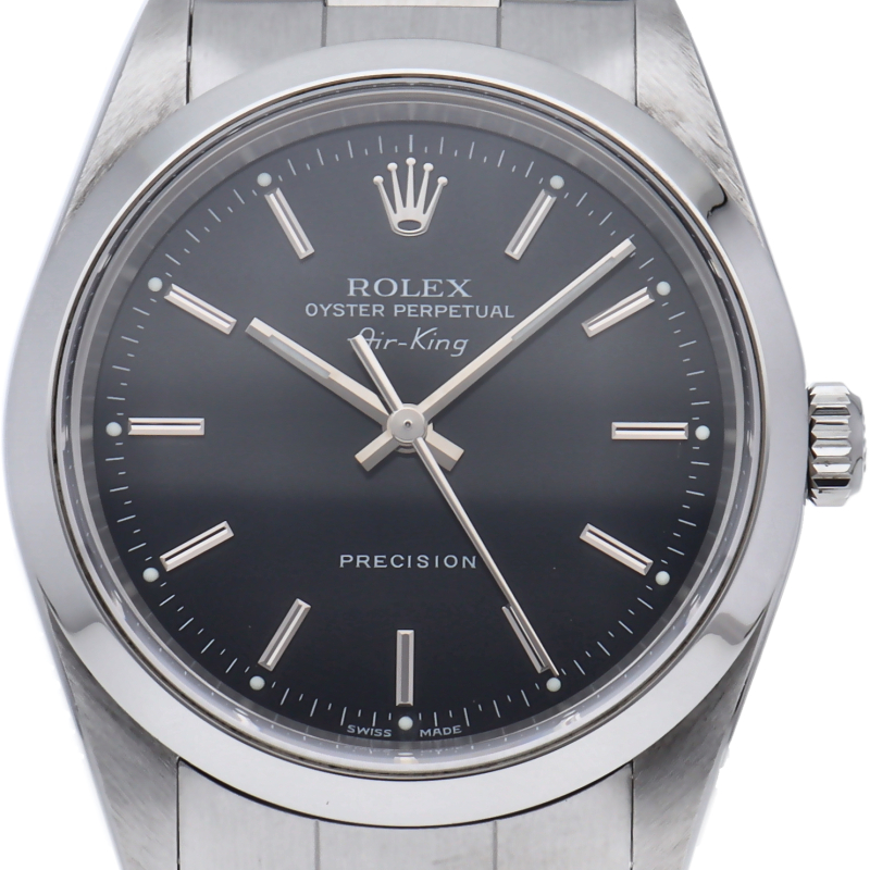 ロレックスの中でもシンプルでオーソドックなデザインが人気の「エアキング」。時計本来の性能を追求し、スタイルを選ばず使用できます。