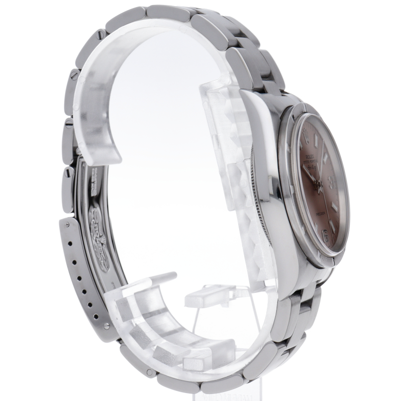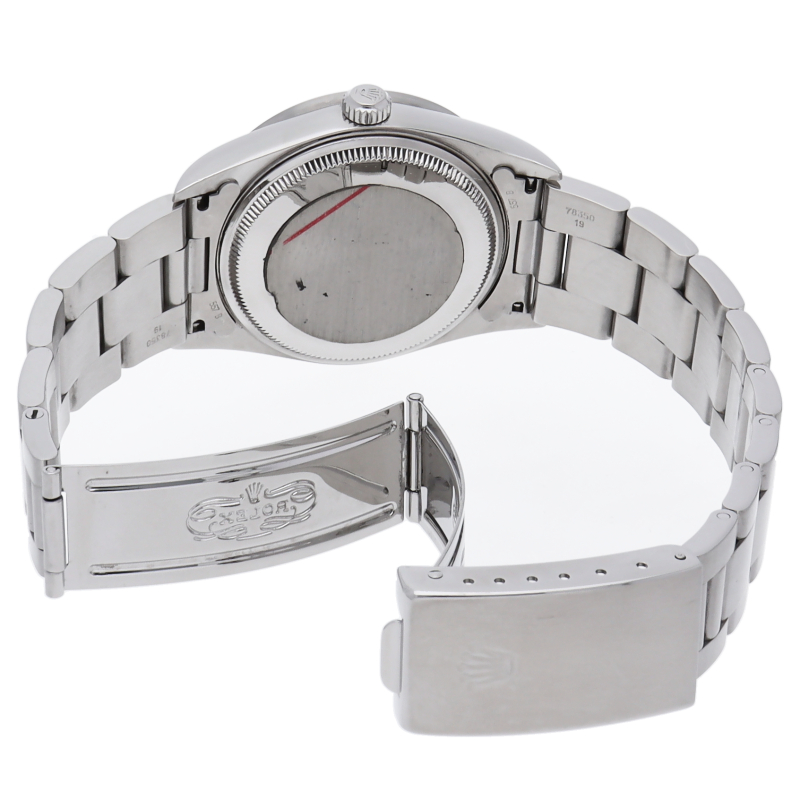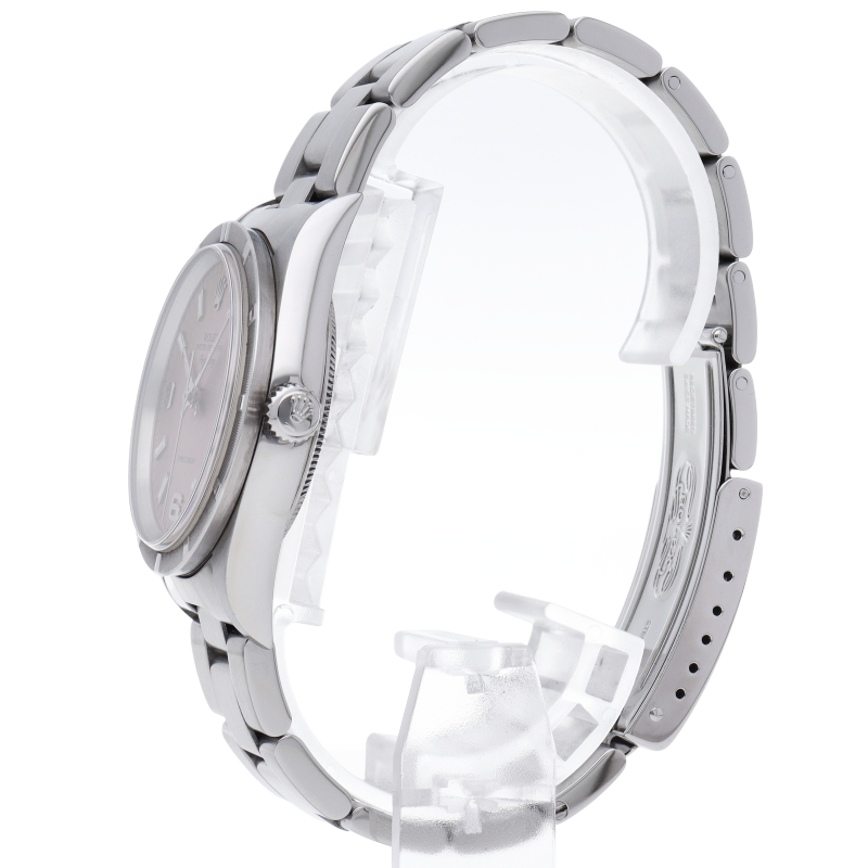 ロレックスの中でもシンプルでオーソドックなデザインが人気の「エアキング」。時計本来の性能を追求し、スタイルを選ばず使用できます。エンジンターンドベゼル仕様。