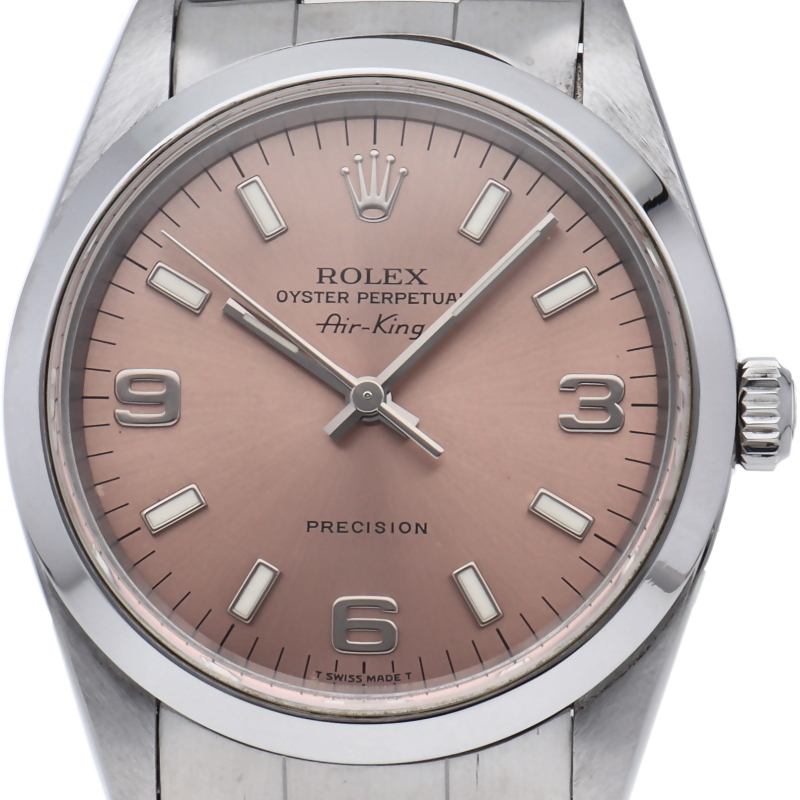 ロレックスの中でもシンプルでオーソドックなデザインが人気の「エアキング」。時計本来の性能を追求し、スタイルを選ばず使用できます。