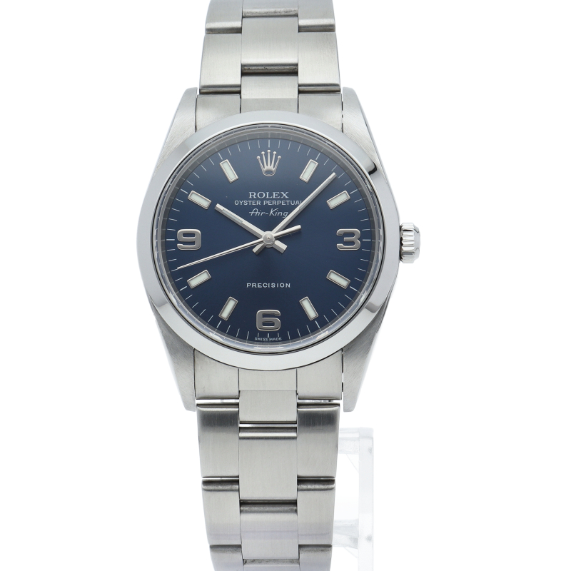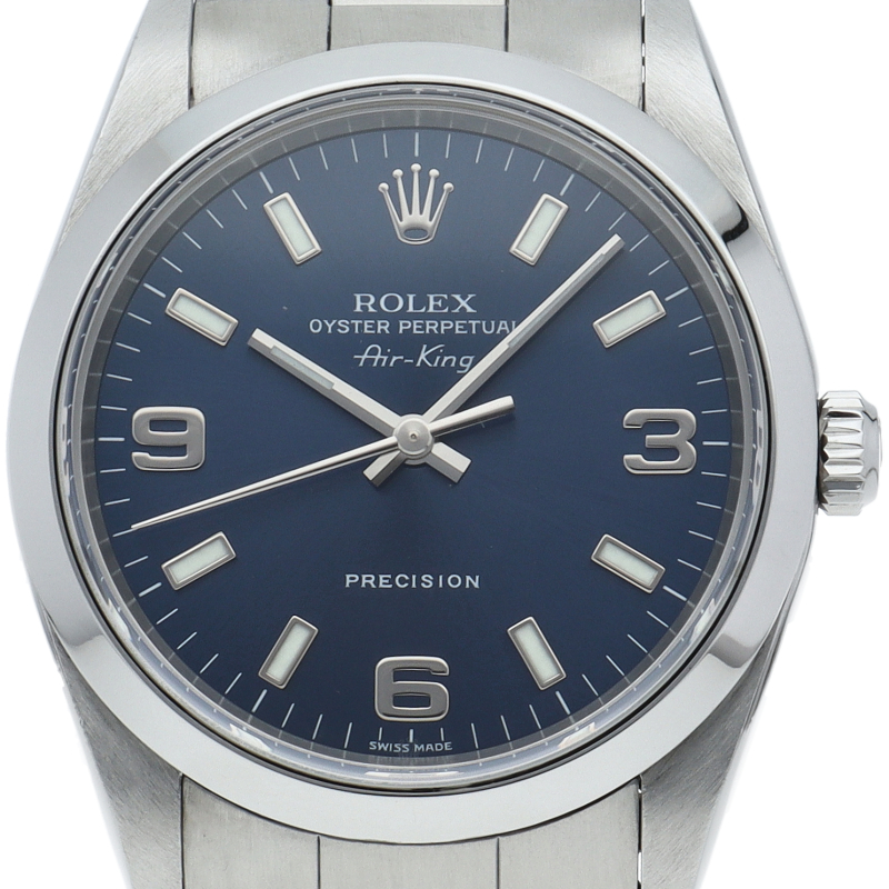 ロレックスの中でもシンプルでオーソドックなデザインが人気の「エアキング」。時計本来の性能を追求し、スタイルを選ばず使用できます。