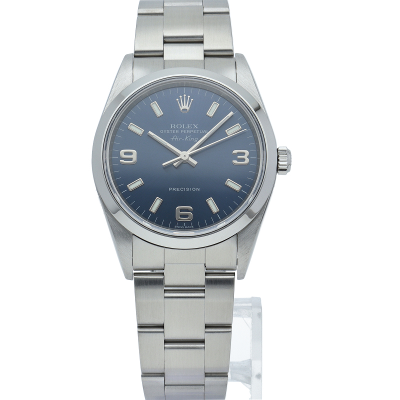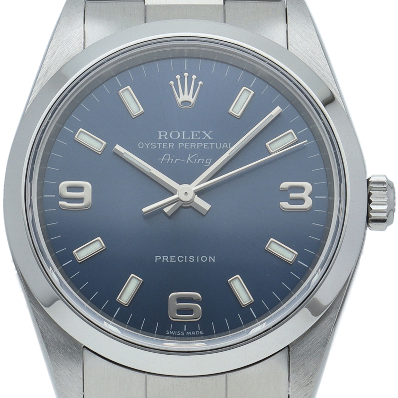 ロレックスの中でもシンプルでオーソドックなデザインが人気の「エアキング」。時計本来の性能を追求し、スタイルを選ばず使用できます。