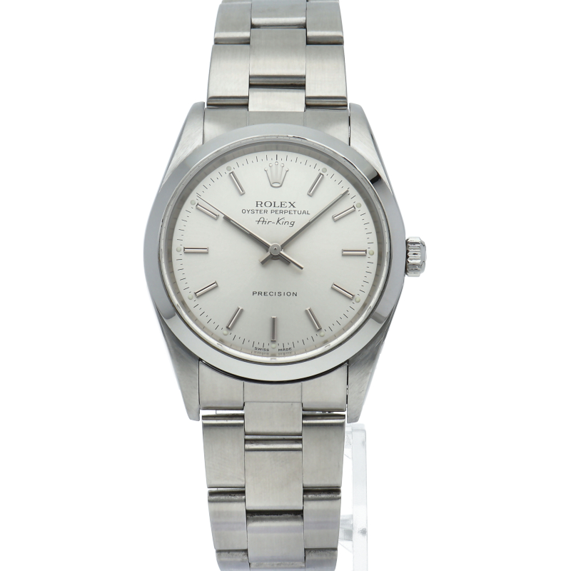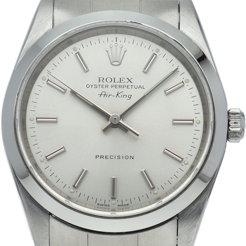 ロレックスの中でもシンプルでオーソドックなデザインが人気の「エアキング」。時計本来の性能を追求し、スタイルを選ばず使用できます。