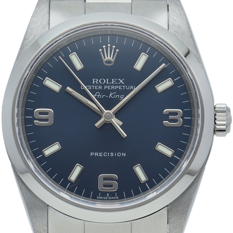 ロレックスの中でもシンプルでオーソドックなデザインが人気の「エアキング」。時計本来の性能を追求し、スタイルを選ばず使用できます。