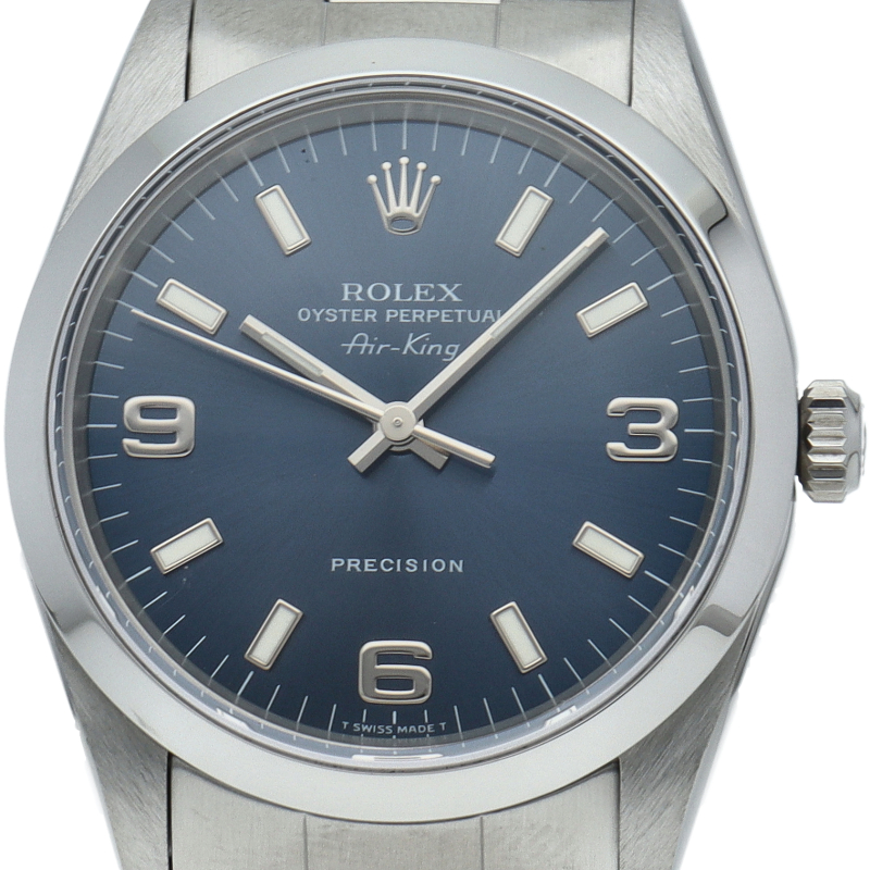 ロレックスの中でもシンプルでオーソドックなデザインが人気の「エアキング」。時計本来の性能を追求し、スタイルを選ばず使用できます。