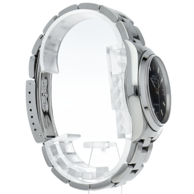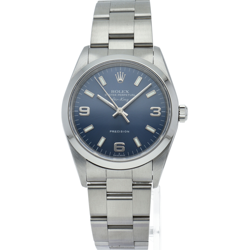 ロレックスの中でもシンプルでオーソドックなデザインが人気の「エアキング」。時計本来の性能を追求し、スタイルを選ばず使用できます。