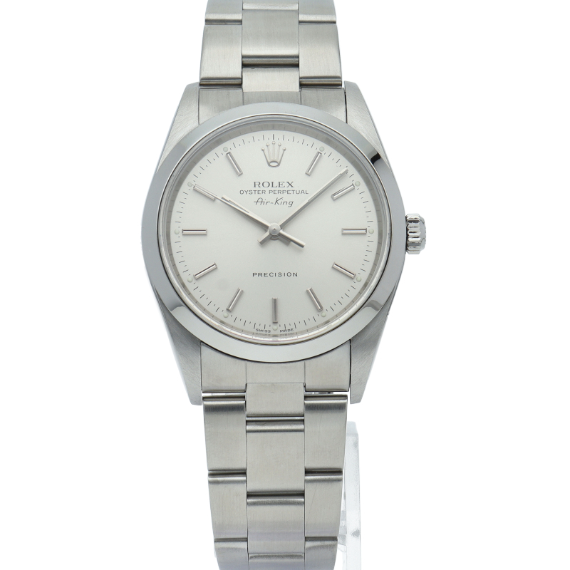 ロレックスの中でもシンプルでオーソドックなデザインが人気の「エアキング」。時計本来の性能を追求し、スタイルを選ばず使用できます。