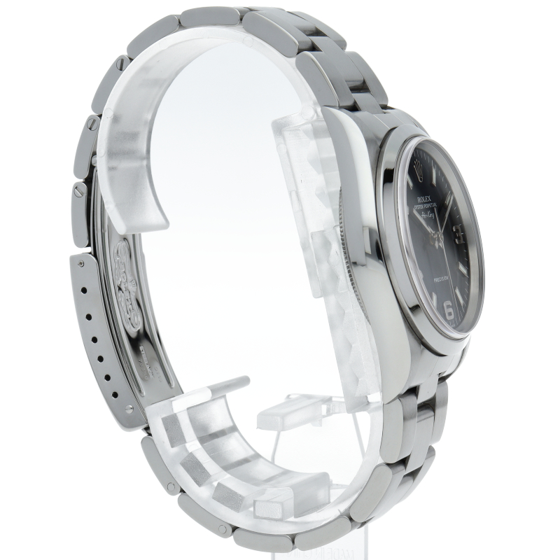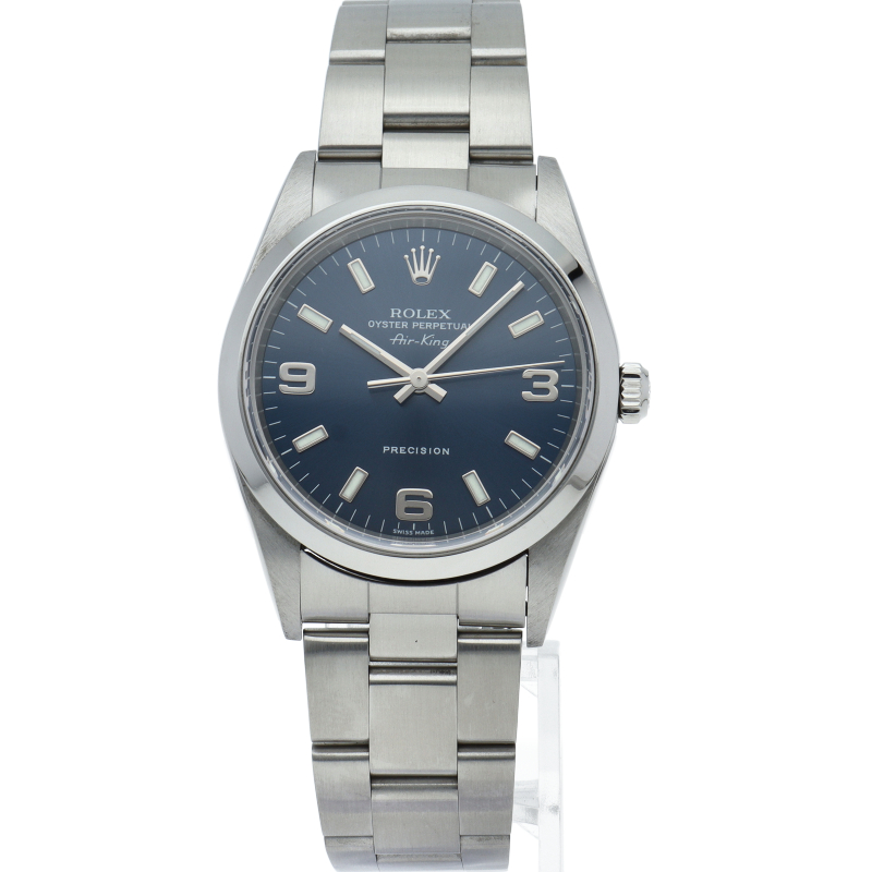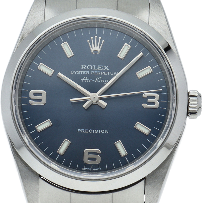 ロレックスの中でもシンプルでオーソドックなデザインが人気の「エアキング」。時計本来の性能を追求し、スタイルを選ばず使用できます。
