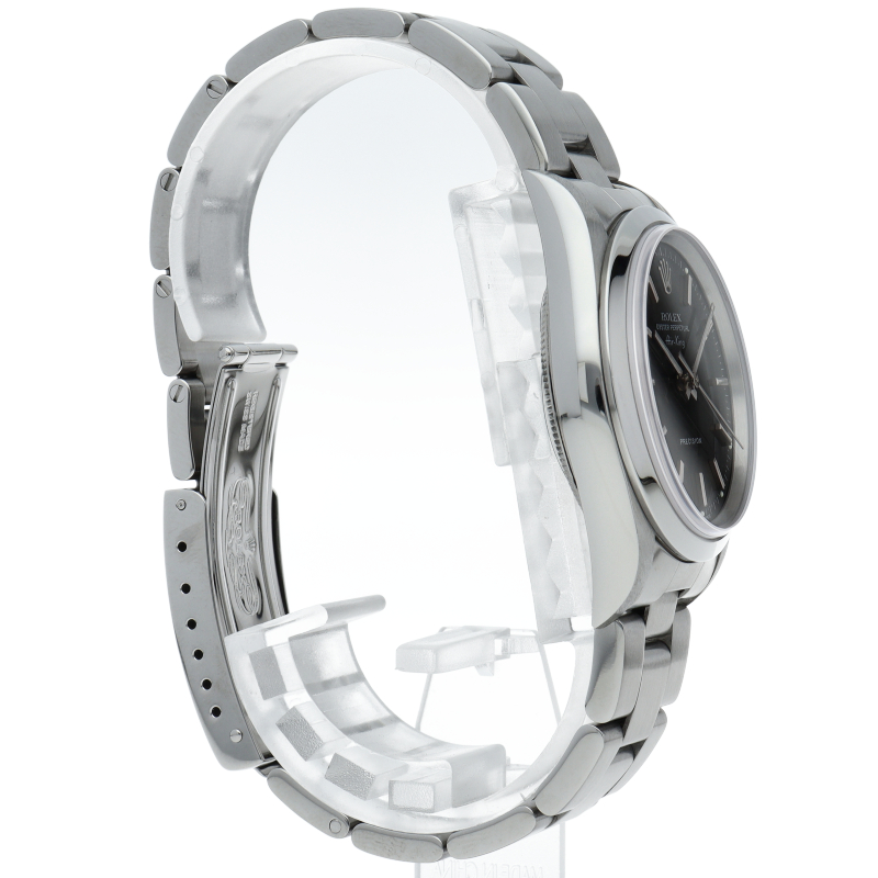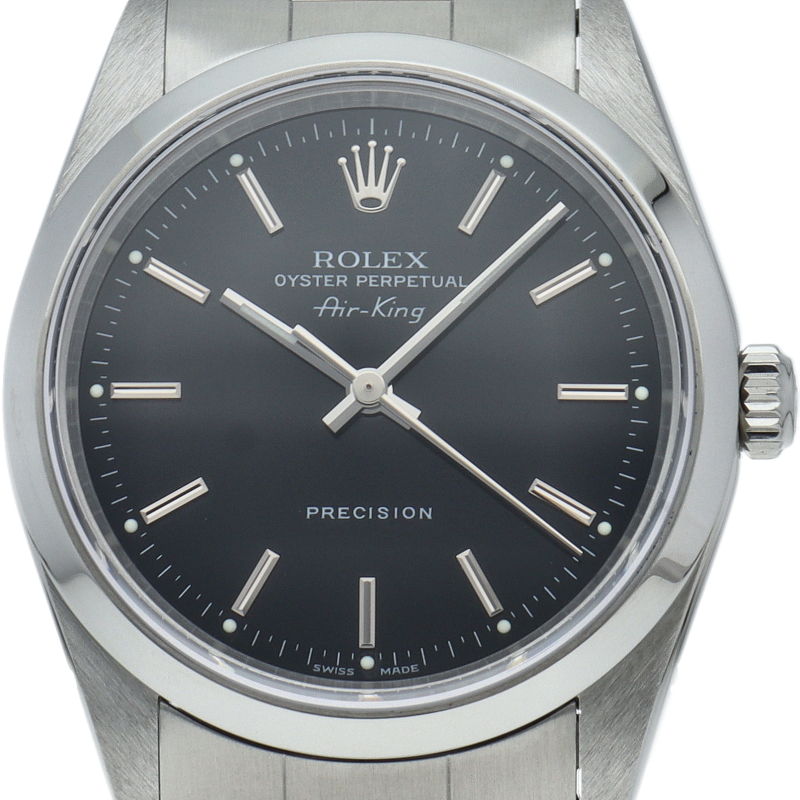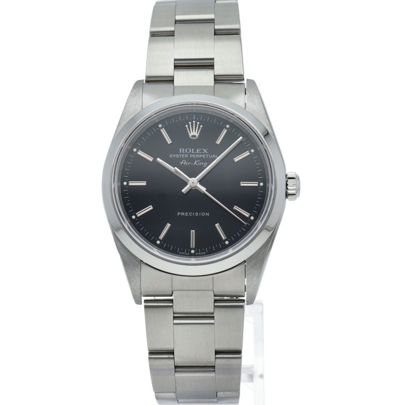 ロレックスの中でもシンプルでオーソドックなデザインが人気の「エアキング」。時計本来の性能を追求し、スタイルを選ばず使用できます。