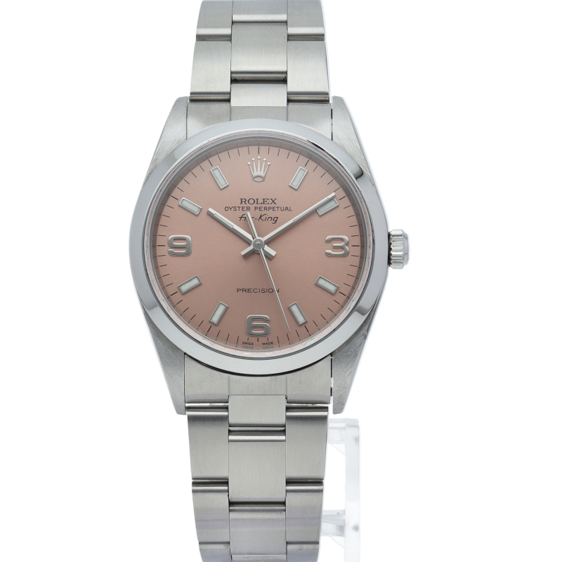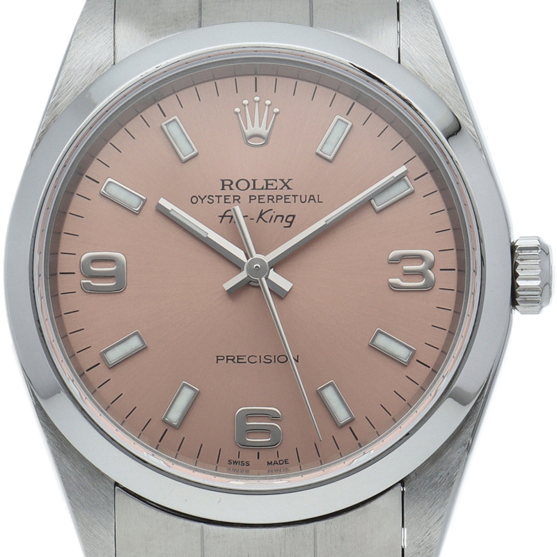 ロレックスの中でもシンプルでオーソドックなデザインが人気の「エアキング」。時計本来の性能を追求し、スタイルを選ばず使用できます。
