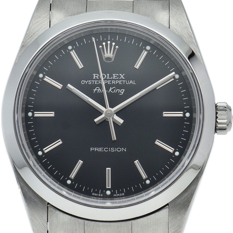 ロレックスの中でもシンプルでオーソドックなデザインが人気の「エアキング」。時計本来の性能を追求し、スタイルを選ばず使用できます。