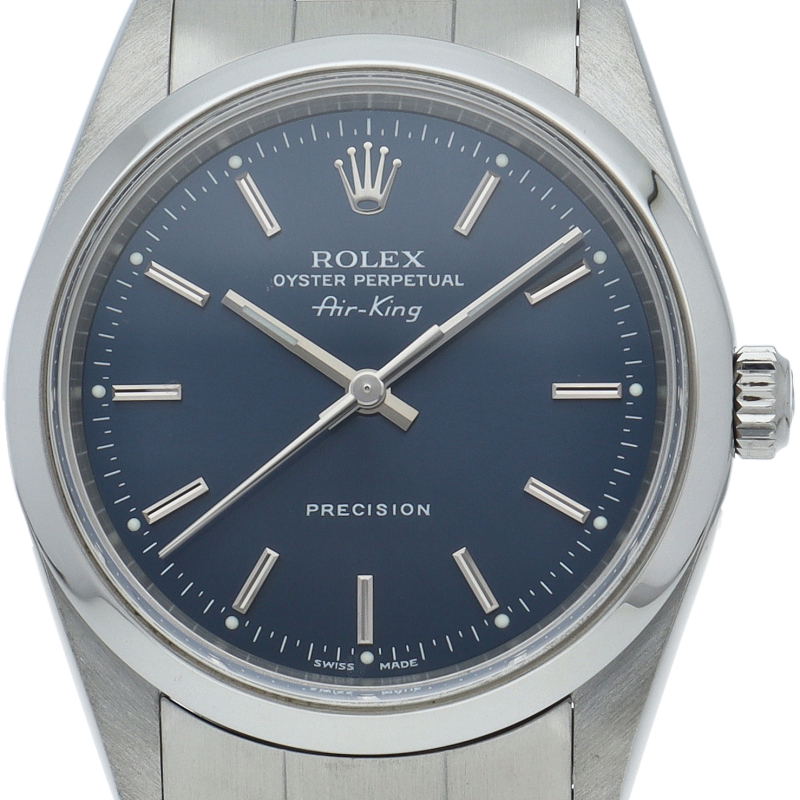 ロレックスの中でもシンプルでオーソドックなデザインが人気の「エアキング」。時計本来の性能を追求し、スタイルを選ばず使用できます。