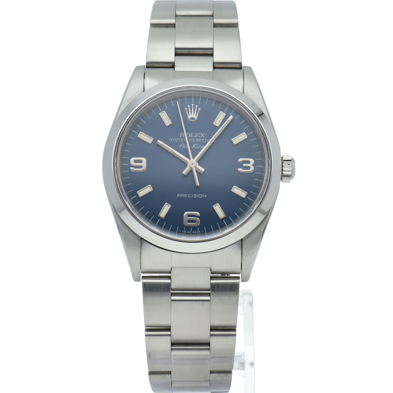 ロレックスの中でもシンプルでオーソドックなデザインが人気の「エアキング」。時計本来の性能を追求し、スタイルを選ばず使用できます。