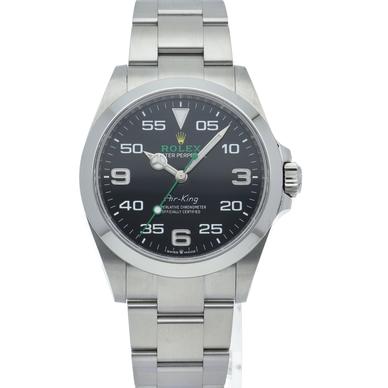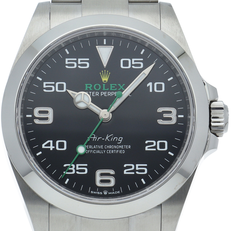2022年発表のニューモデル、Ref.126900「オイスターパーペチュアル エアキング」。飛躍的に航空技術が進歩した1930年代に高精度を求めるパイロットに愛されていたオイスターモデルをオマージュして製造されたパイロットウォッチです。