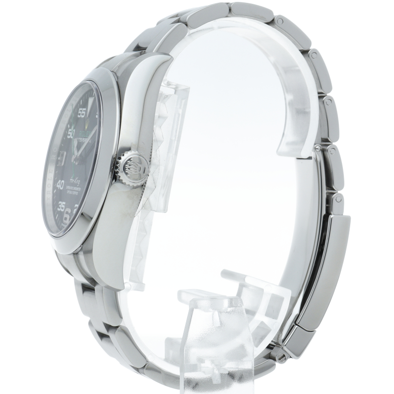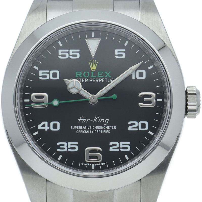 2016年発表のニューモデル、Ref.116900「オイスターパーペチュアル エアキング」。飛躍的に航空技術が進歩した1930年代に高精度を求めるパイロットに愛されていたオイスターモデルをオマージュして製造されたパイロットウォッチです。