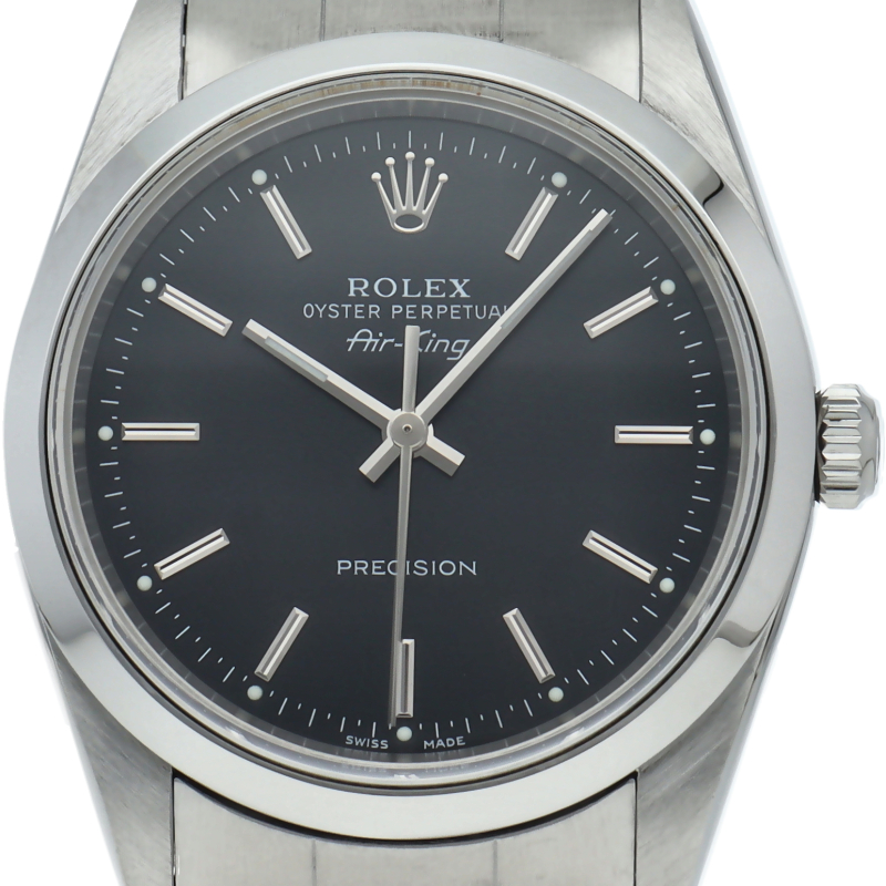 ロレックスの中でもシンプルでオーソドックなデザインが人気の「エアキング」。時計本来の性能を追求し、スタイルを選ばず使用できます。